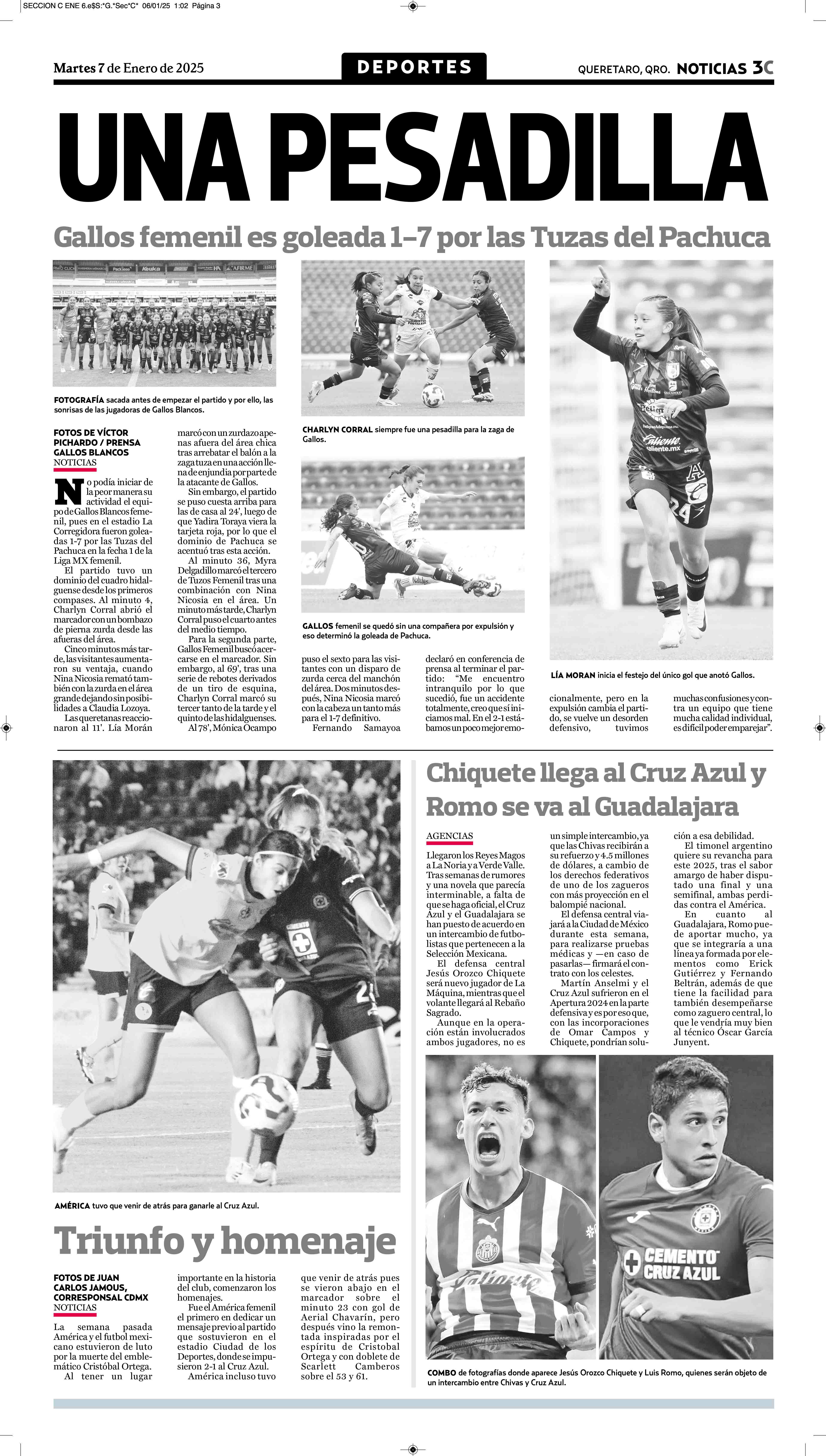 Ya para la segunda mitad del encuentro, las dirigidas por Ángel Villacampa, unieron fuerzas y después vino la remontada inspiradas por el espíritu de Cristobal Ortega y con doblete de Scarlett Camberos sobre los 53 minutos y 8 minutos después a los 61 minutos de recorridos llegó el triunfo de la Femenil del América, así abriendo el torneo con triunfo y los 3 puntos, para el viernes recibir a Gallos Femenil a las 17 horas en el Estadio Ciudad de los Deportes en lo correspondiente a la Jornada del Clausura 2025.